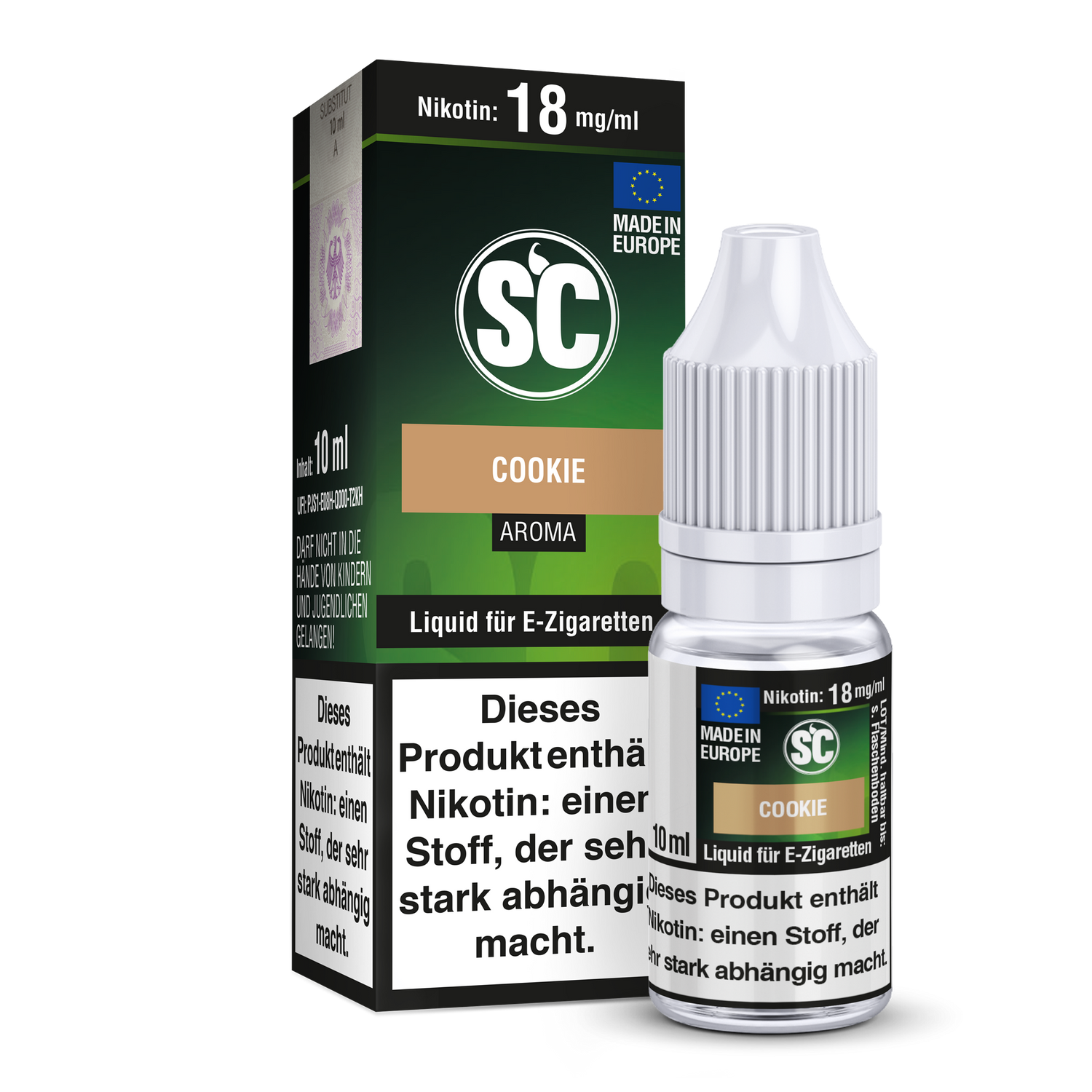 Mit jeder SC Liquid Flasche, erhalten Sie 10 ml Liquid von dem gewählten Liquid Aroma und der gewählten Stärke. Ihnen stehen insgesamt 5 Stärken mit und ohne Nikotin zu Auswahl. Das SC Cookie E-Zigaretten Liquid schmeckt beim Dampfen nach Cookies.