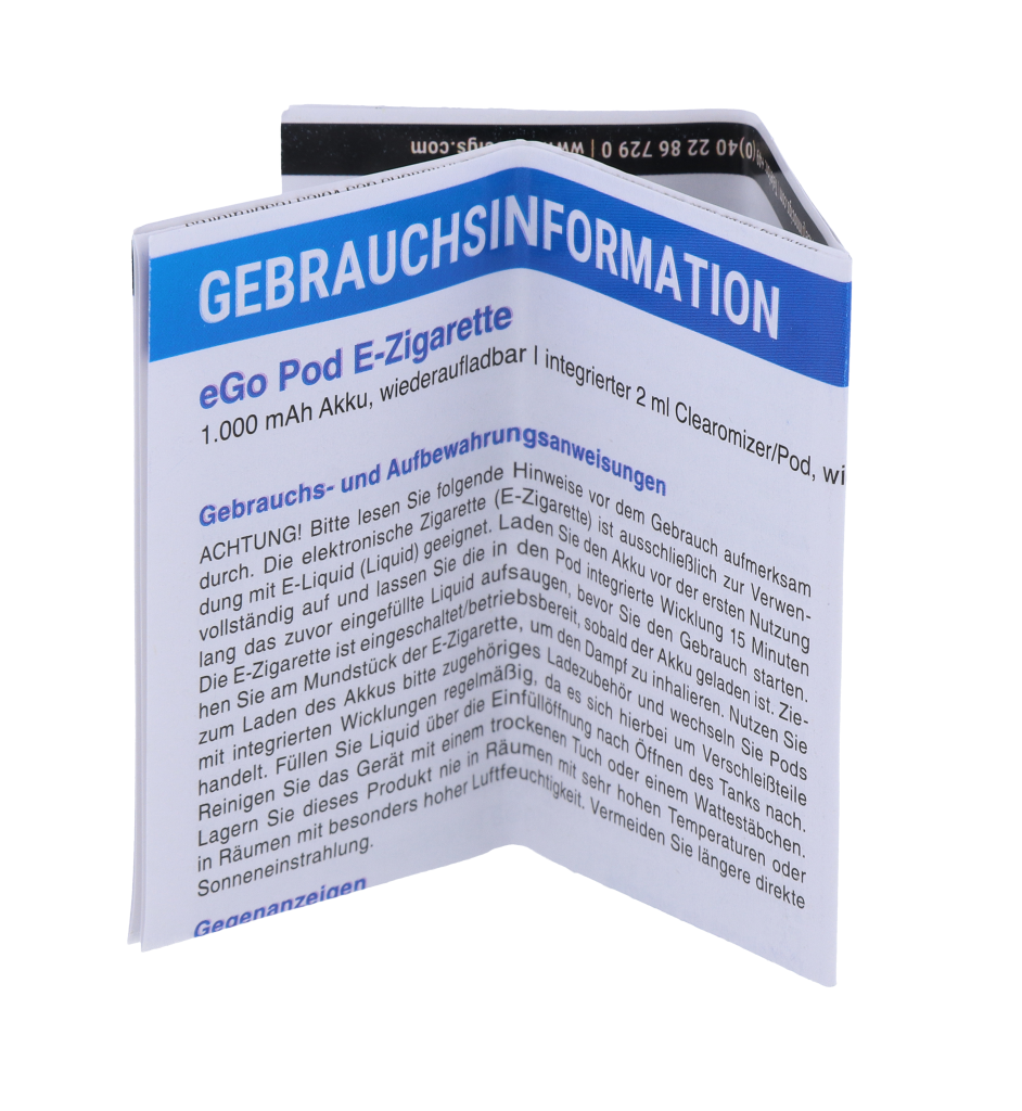 Für die eGO POD E-Zigarette ist das eGO POD Cartridge-System geeignet. Diese kann bis zu 2ml Liquid über das Bottom-Filling-System aufnehmen. Da der Tank transparent ist, können Sie diesen jederzeit bei Bedarf wieder mit Liquid auffüllen. Im Cartridge ist eine Wicklung mit 1,2 Ohm verbaut, sodass dieses nur für das Backendampfen (moderate Dampfen) ausgelegt ist. Sobald die Dampfemenge zurückgeht und Ihr Liquid verfälscht schmeckt, so tauschen Sie das eGO POD Cartridge-System gegen ein neues aus. Pro Packung sind insgesamt 5x eGO POD Cartridges enthalten.