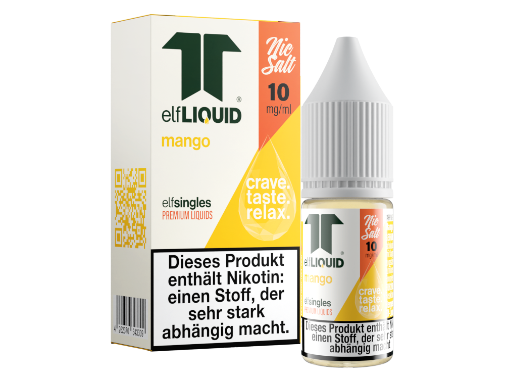 Elf-Liquid präsentiert aus der Single-Serie das Mango Nikotinsalz Liquid, das in den Nikotinstärken 10 mg/ml und 20 mg/ml angeboten wird. Jede 10 ml Flasche enthält das fertige Liquid, das direkt mit einer E-Zigarette verwendet werden kann. Beim Dampfen entfaltet sich der Geschmack von Mango.Auszeichnung gemäß CLP-Verordnung (EG) Nr. 1272/2008