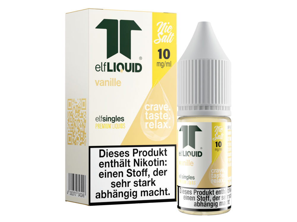 Elf-Liquid präsentiert aus der Single-Serie das Vanille Nikotinsalz Liquid, das in den Nikotinstärken 10 mg/ml und 20 mg/ml angeboten wird. Jede 10 ml Flasche enthält das fertige Liquid, das direkt mit einer E-Zigarette verwendet werden kann. Beim Dampfen entfaltet sich der Geschmack von Vanille.Auszeichnung gemäß CLP-Verordnung (EG) Nr. 1272/2008