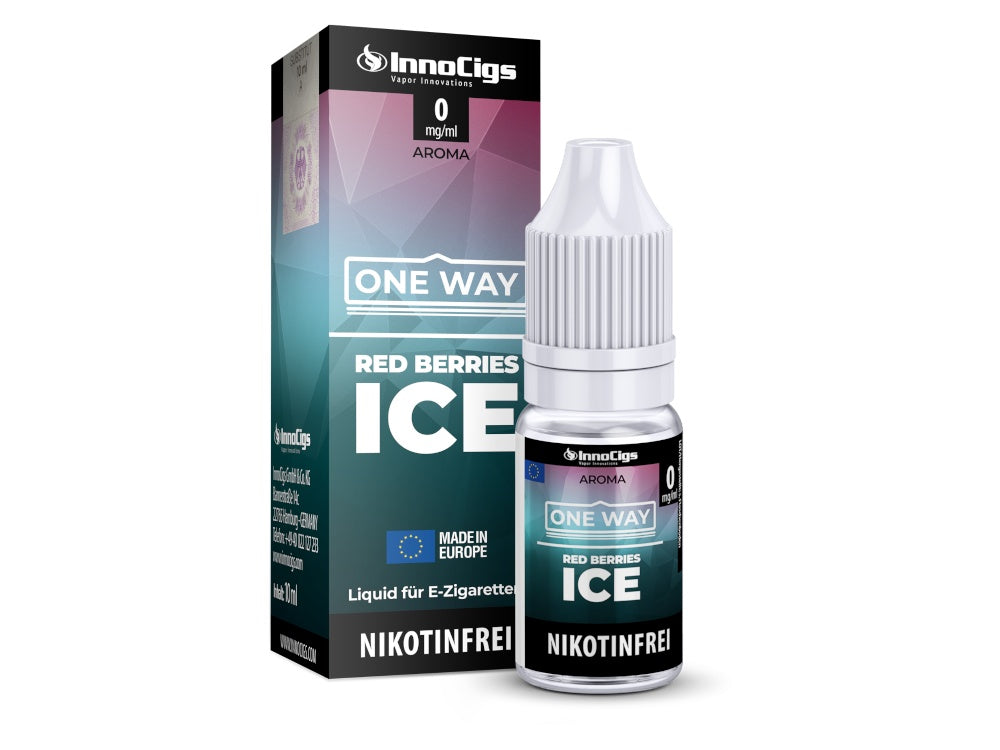 Aus dem Hause InnoCigs kommen die Nikotinsalz Liquids der Reihe One Way. Die Sorte Red Berries Ice schmeckt beim Dampfen mit einer E-Zigarette nach roten Früchten mit einer kühlen Note. Das Nikotinsalz Liquid kann sofort mit einer E-Zigarette verdampft werden und ist in den Stärken 0 mg/ml, 10 mg/ml und 20 mg/ml erhältlich.Auszeichnung gemäß CLP-Verordnung (EG) Nr. 1272/2008