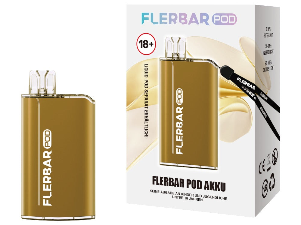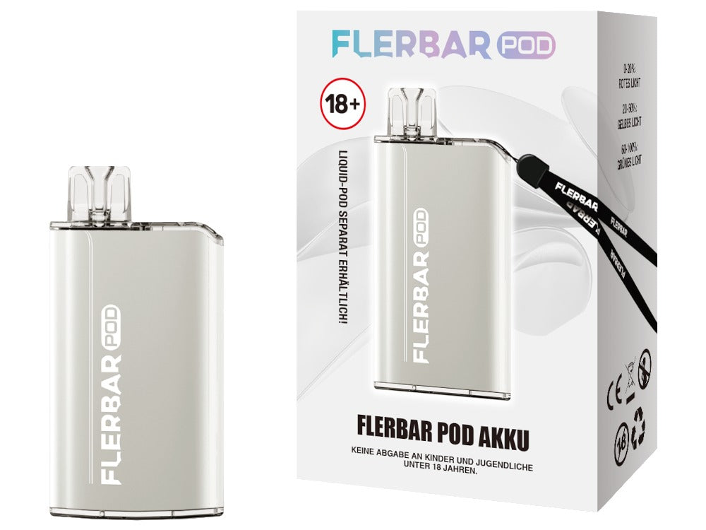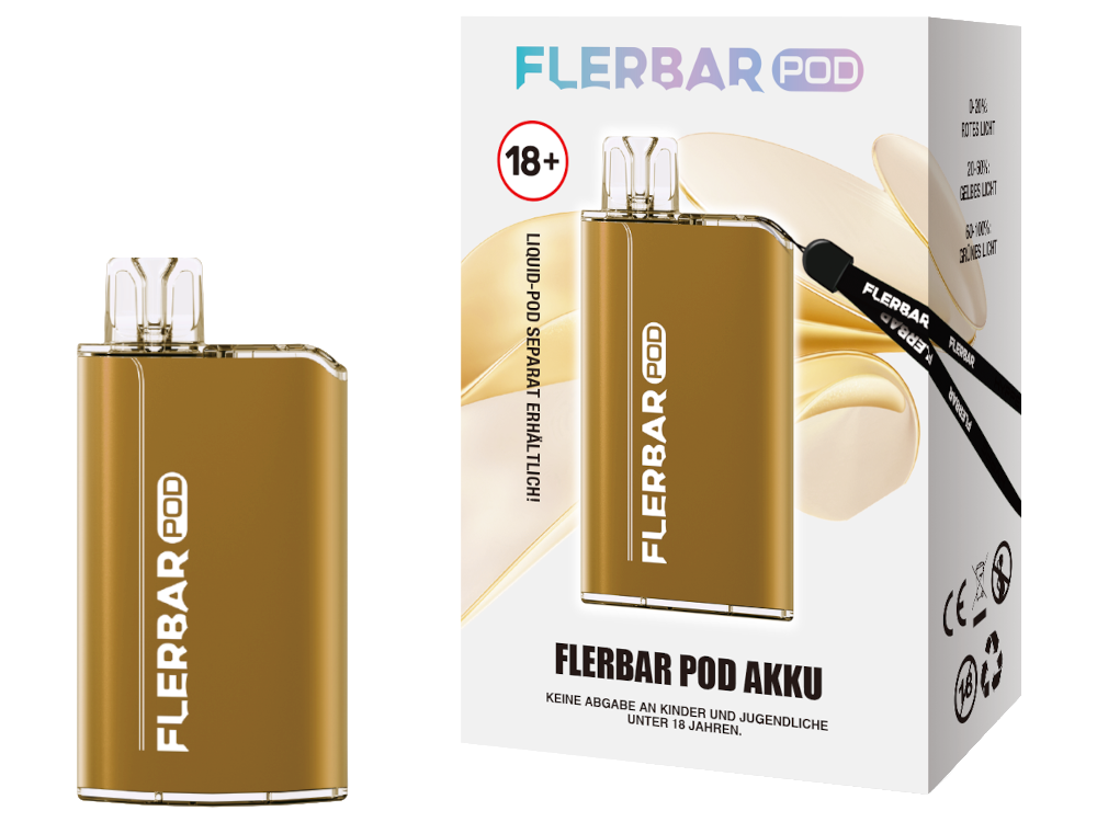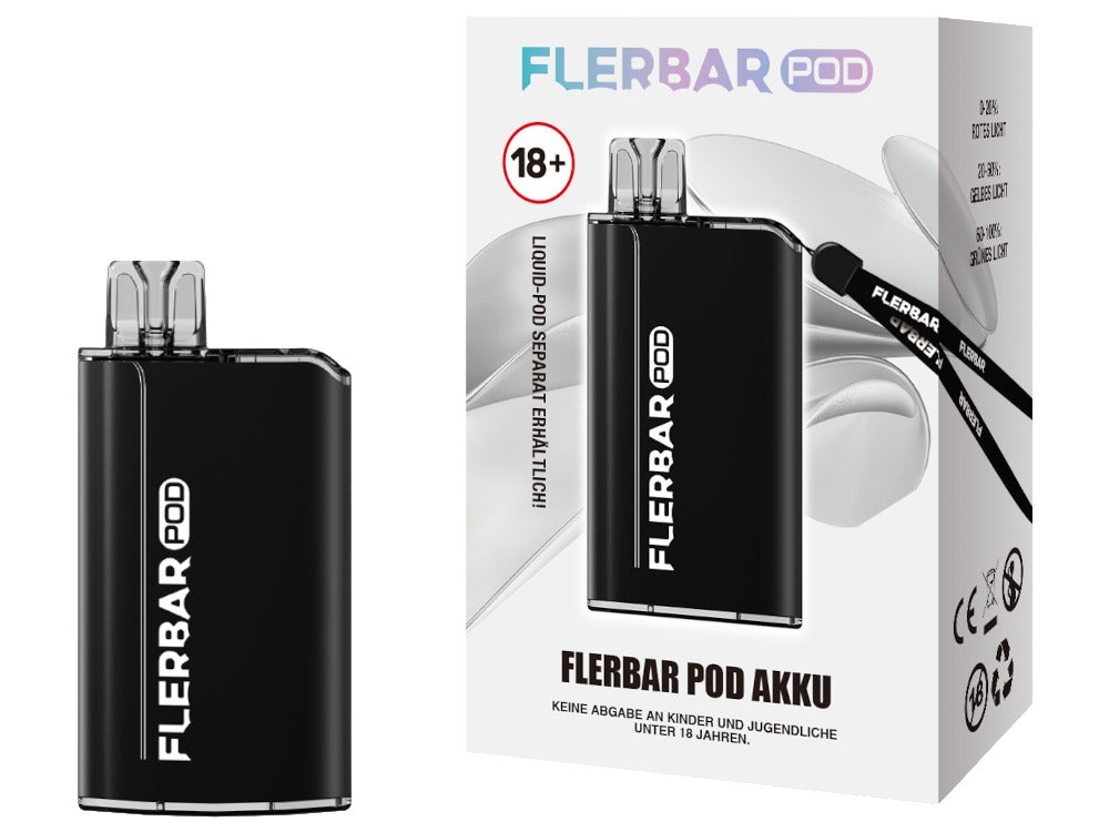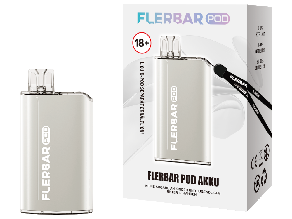 Der Flerbar POD Akku ist kompatibel mit den vorbefüllten Flerbar PODs. Abhängig vom Zugverhalten ermöglicht die Akkukapazität von 500 mAh bis zu 600 Züge mit dem Flerbar Akku. Die Feuertaste entfällt, da der Akku über eine Zugautomatik betrieben wird. Das Gerät wird durch fünf Züge am Mundstück ein- und ausgeschaltet. Der USB-C-Anschluss ermöglicht das Aufladen des Akkus. Dank der Schnellladefunktion des Flerbar POD Akkus dauert dies lediglich 30 Minuten. Den Akku erhalten Sie bei uns in 5 verschiedenen Farben. Bitte beachten Sie, dass das USB-C-Ladekabel nicht im Lieferumfang enthalten ist und separat im InnoCigs-Shop erworben werden kann.