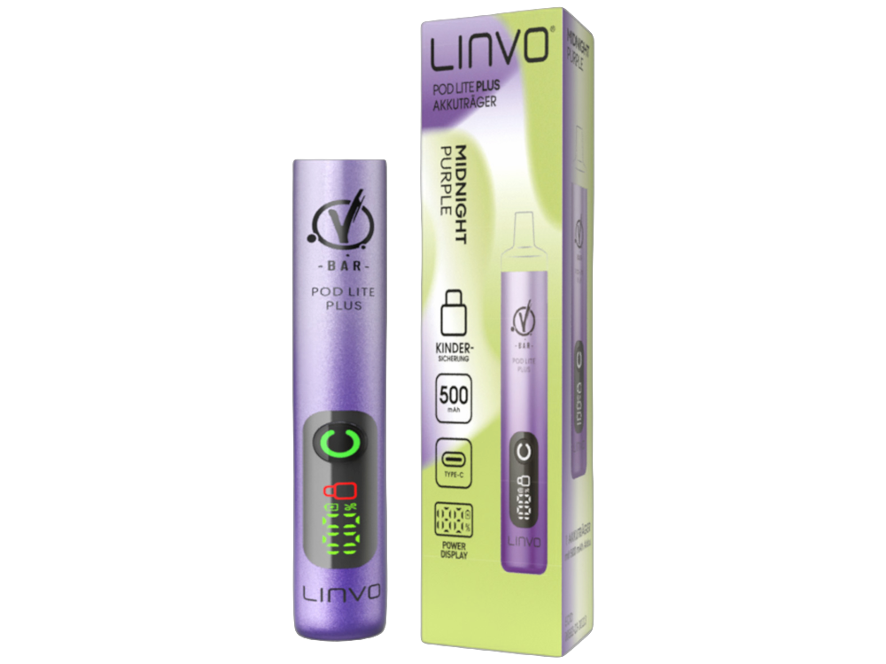 Der Linvo Pod Lite Plus Akku ist speziell für die Nutzung mit den Linvo Pod Lite & Linvo Pod Lite Plus Prefilled Pods entwickelt. Er hat eine Akkukapazität von 500 mAh und bietet eine zuverlässige Energiequelle für Ihre E-Zigarette. Der Akku ist mit einem integrierten Display ausgestattet, das den Akkustand, die Kindersicherung und den An/Aus-Schalter anzeigt. Diese Funktionen erhöhen die Sicherheit und Kontrolle während der Nutzung. Dank der Zugautomatik ist die Handhabung des Akkus sehr einfach, da keine Einstellungen notwendig sind. Der Linvo Pod Lite Plus Akku ist kompatibel mit den Linvo Pod Lite & Linvo Pod Lite Plus Prefilled Pods, die in verschiedenen Geschmacksrichtungen erhältlich sind und sich durch einfaches Zusammenstecken verbinden lassen. Dadurch ist die E-Zigarette sofort einsatzbereit. Bitte beachten Sie, dass der Akku ohne Ladekabel geliefert wird. Passende USB-Type C-Kabel sind separat erhältlich.Lieferumfang: