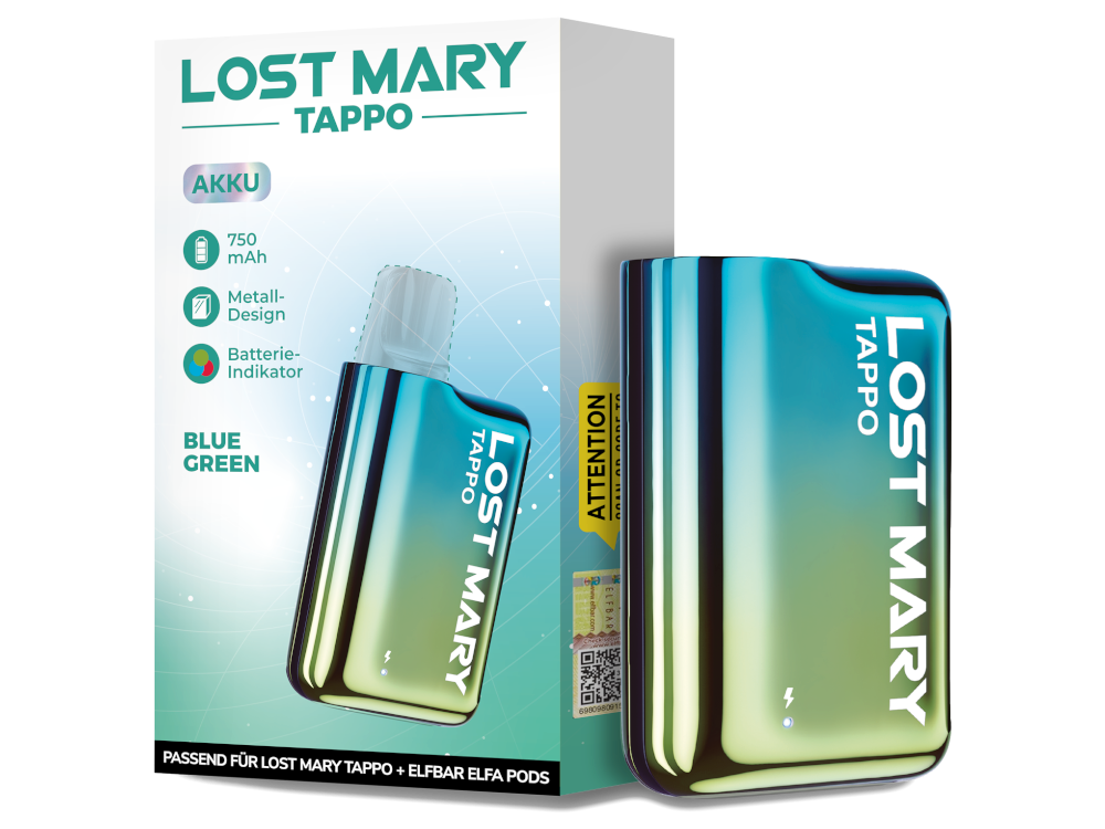 Der Lost Mary Tapp Akku ist das passende Gegenstück zu den Lost Mary Tappo Pods, die in verschiedenen Geschmacksrichtungen erhältlich sind. Die fest verbaute Akkuzelle verfügt über eine Kapazität von 750 mAh. Um den Akku mit neuer Energie zu versorgen, kann er mit einem USB-C Ladekabel, welches nicht im Lieferumfang enthalten ist, geladen werden. Der Akku wird durch einfaches Zusammenstecken mit den separat erhältlichen Tappo Pods verbunden. Verbunden werden kann der Akku aber nicht nur mit den Tappo Pods von Lost Mary, sondern auch mit den Elfbar Elfa Prefileld Pods, die in vielen verschiedenen Sorten erhältlich sind und dem Elfa Leer-Pod. Dank der Möglichkeit, den Akku aufzuladen und die Pods auszutauschen, bietet die Lost Mary Tappo eine nachhaltigere Alternative zu herkömmlichen Einweg-E-Zigaretten.